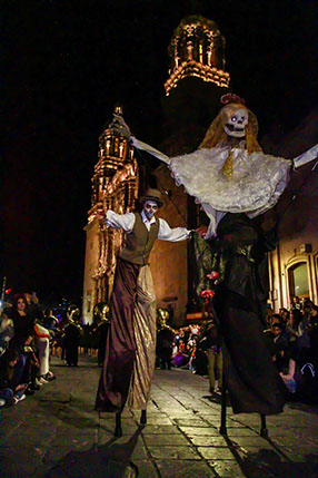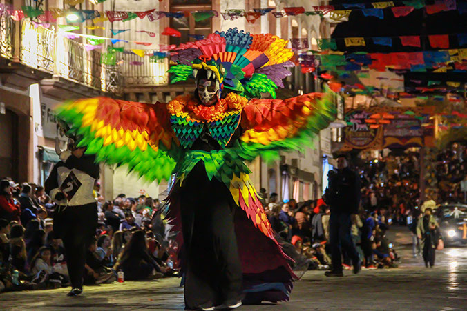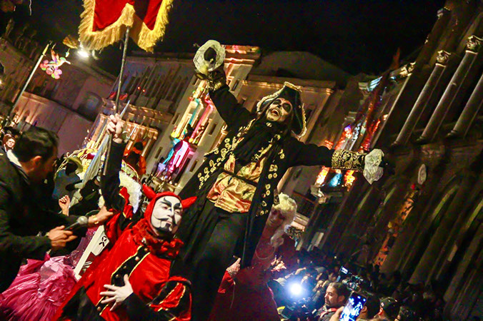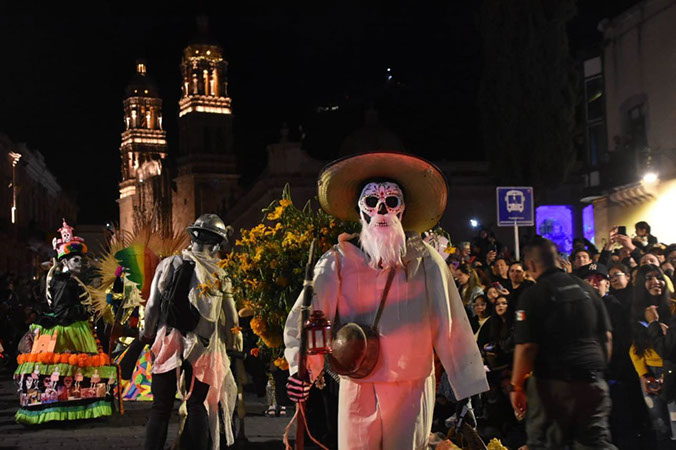 La Banda Sinfónica del Estado de Zacatecas dio inicio a su recorrido desde la Máquina 30-30, para continuar por las avenidas González Ortega e Hidalgo, ahí la gente admiró los vestuarios, caracterizaciones y disfraces de las y los participantes, mismos que destacaron la cultura mexicana alusiva a esta festividad.
