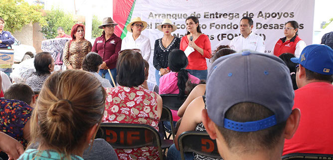 Tan solo para el municipio de Fresnillo, se distribuyeron más de 3 mil 500 apoyos, entre otros, mil despensas, mil cobijas, mil colchonetas, 500 paquetes de limpieza y rollos de hule. Se benefició a personas de las comunidades de Laguna Seca, Estación San José, San Felipe, Morfin Chávez y las colonias El Olivar y Francisco Goitia.