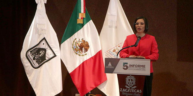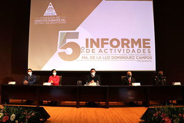 La Dra. Ma. de la Luz Domínguez Campos, presentó su Quinto Informe de Actividades como Presidenta de la Comisión de Derechos Humanos del Estado de Zacatecas (CDHEZ), ante los representantes de los tres poderes del estado, en donde señaló que el Organismos ha avanzado hacia la consolidación administrativa, jurídica y social.