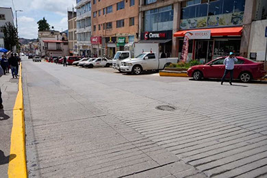 Comentó que la obra garantiza que en al menos cinco años no existan baches en dicha zona, esto gracias a que se cumplieron metas por 177 metros cuadrados de concreto estampado, 376 de piso de concreto, 629 pisos de concreto armado con malla, así como la construcción de base hidráulica.